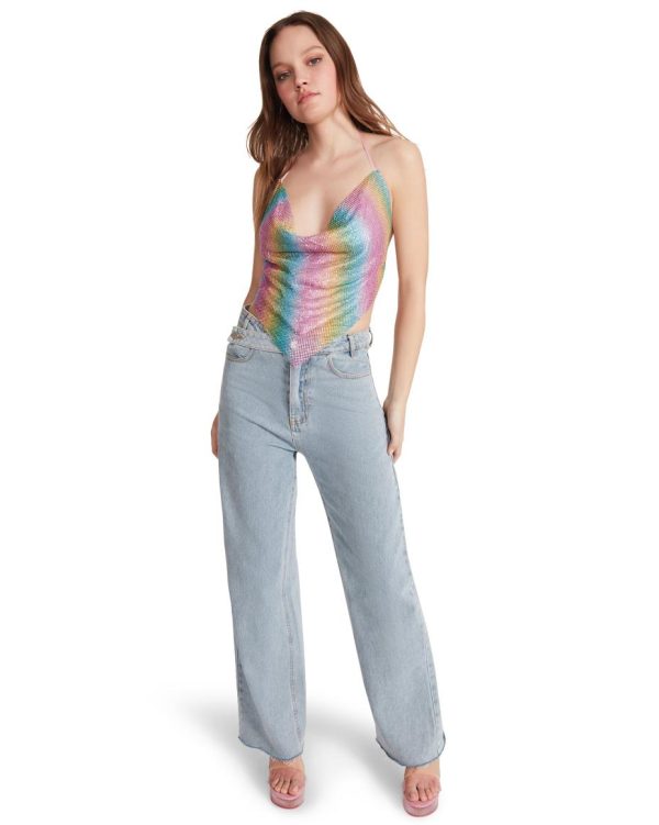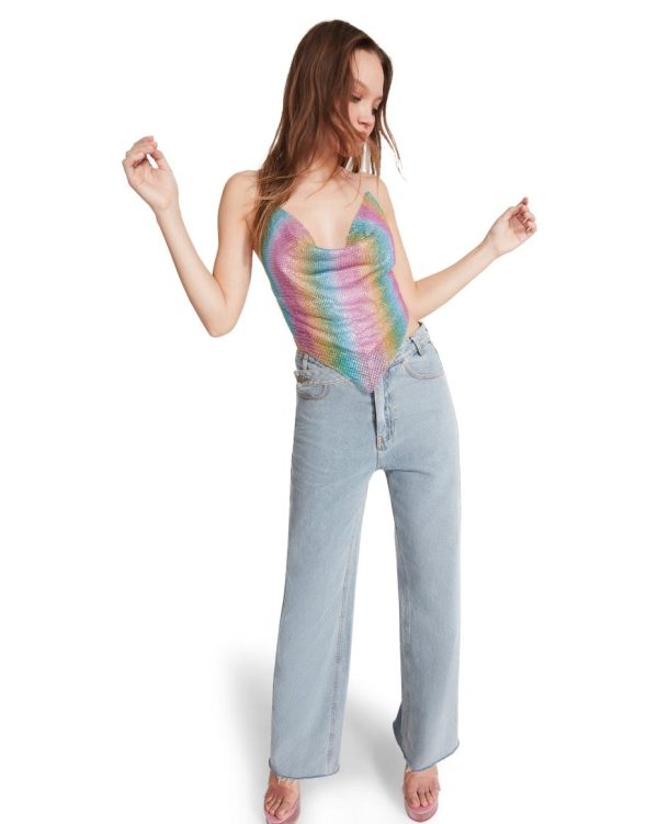 The 2000s called. They want to loan you the hottest statement piece of the decade. The Barely There Rhinestone Top serves nostalgia with its always classic triangle shape, cowl neck, and rhinestone-studded fabric.Cowl neckHalterOpen backEmbellished rhinestones100% polyester