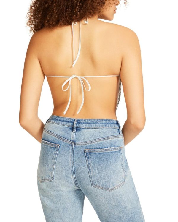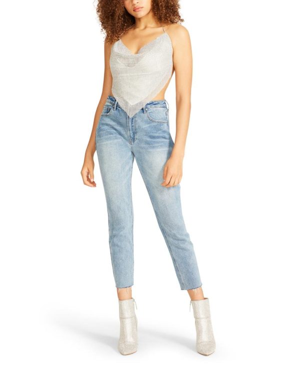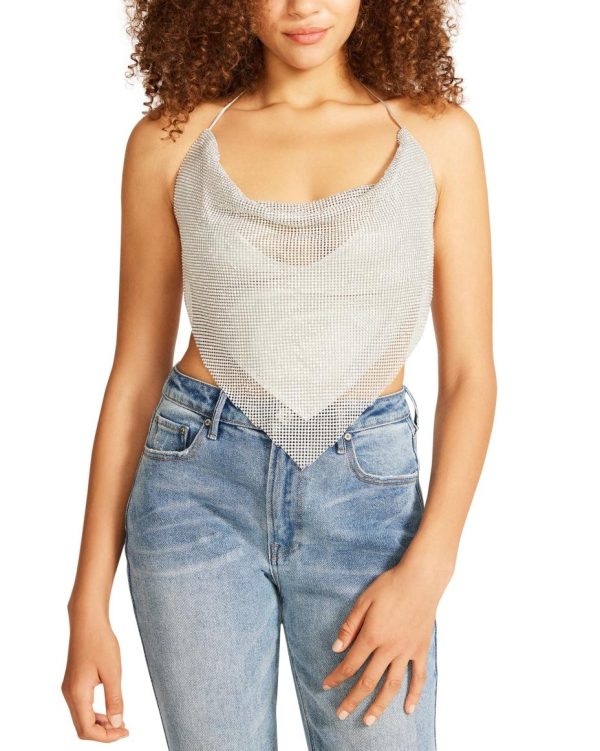 The 2000s called. They want to loan you the hottest statement piece of the decade. The Barely There Rhinestone Top serves nostalgia with its always classic triangle shape, cowl neck, and rhinestone-studded fabric.