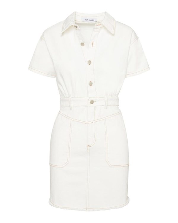 Steve Madden Dresses | Womens Denim Button Up Dress White