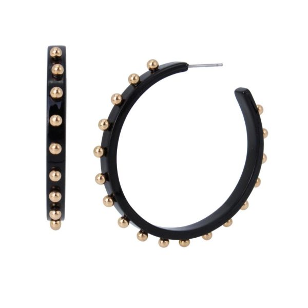 Steve Madden Jewelry | Womens Beaded Resin Hoop Earrings Black