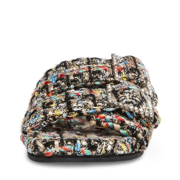 All things comfy and chic is what SANDSTORM is about! Make every day a little fancier with this slide, featuring a classy tweed design and rhinestone buckle embellishments.