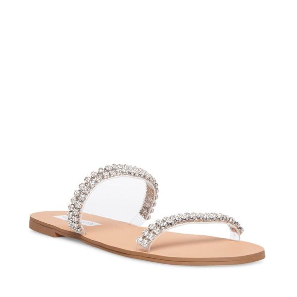 A simple silhouette with a pop of sparkle, FELICIA is the sandal you need right now. This easy slip-on pair features thin, rhinestone-embellished straps that you can wear with both laid-back jeans and dressier looks.