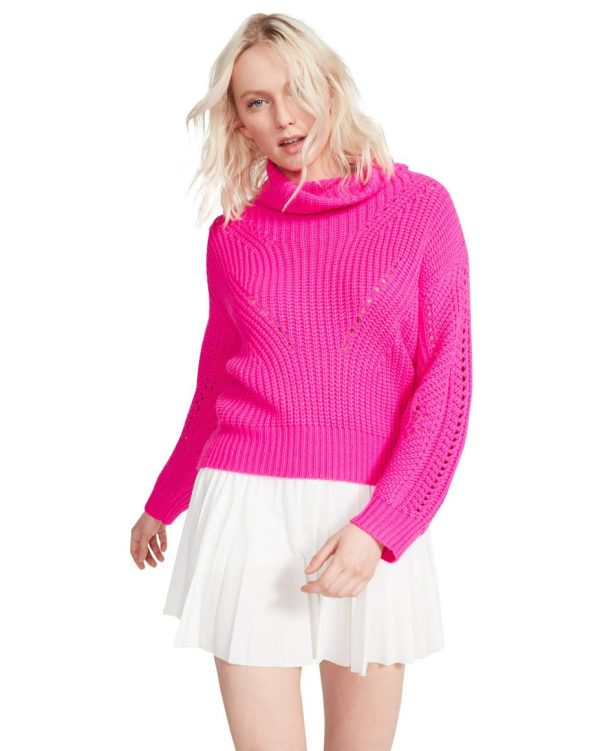 Pull on this turtleneck sweater and cozy up with your honey. Simple in the front, this style criss crosses in the back for a flirty twist on this chilly weather must-have.